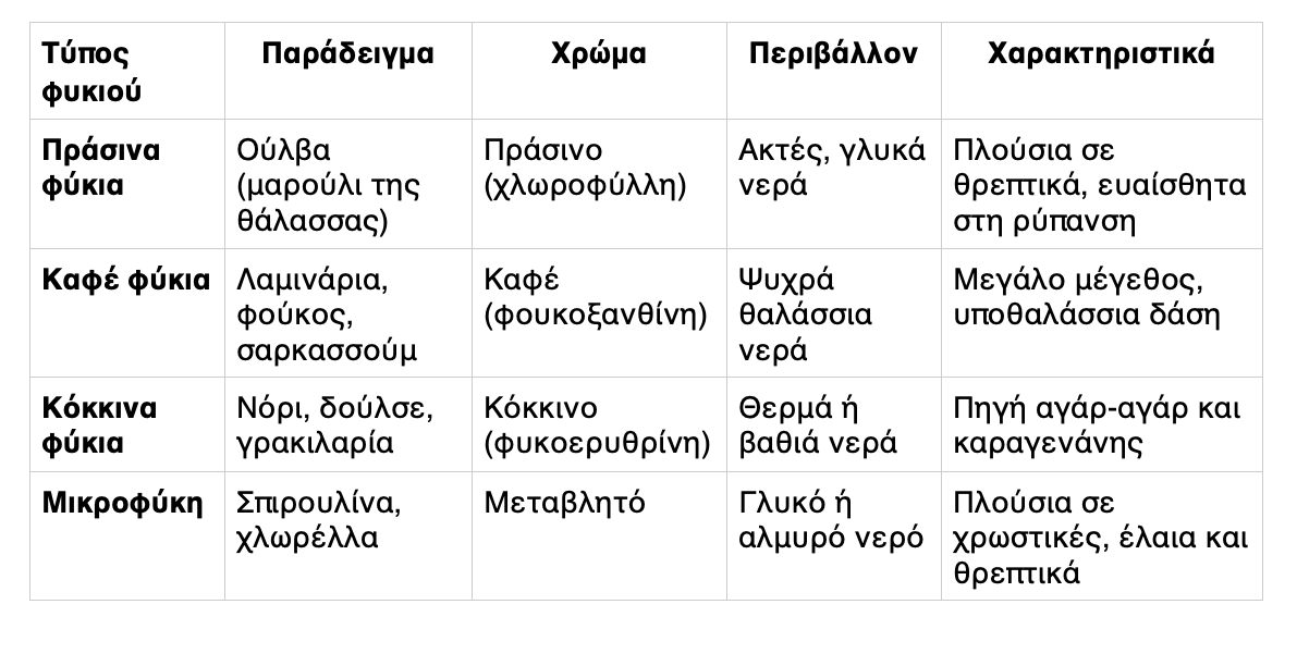 ΟΙ ΚΥΡΙΕΣ ΚΑΤΗΓΟΡΙΕΣ ΦΥΚΙΩΝ